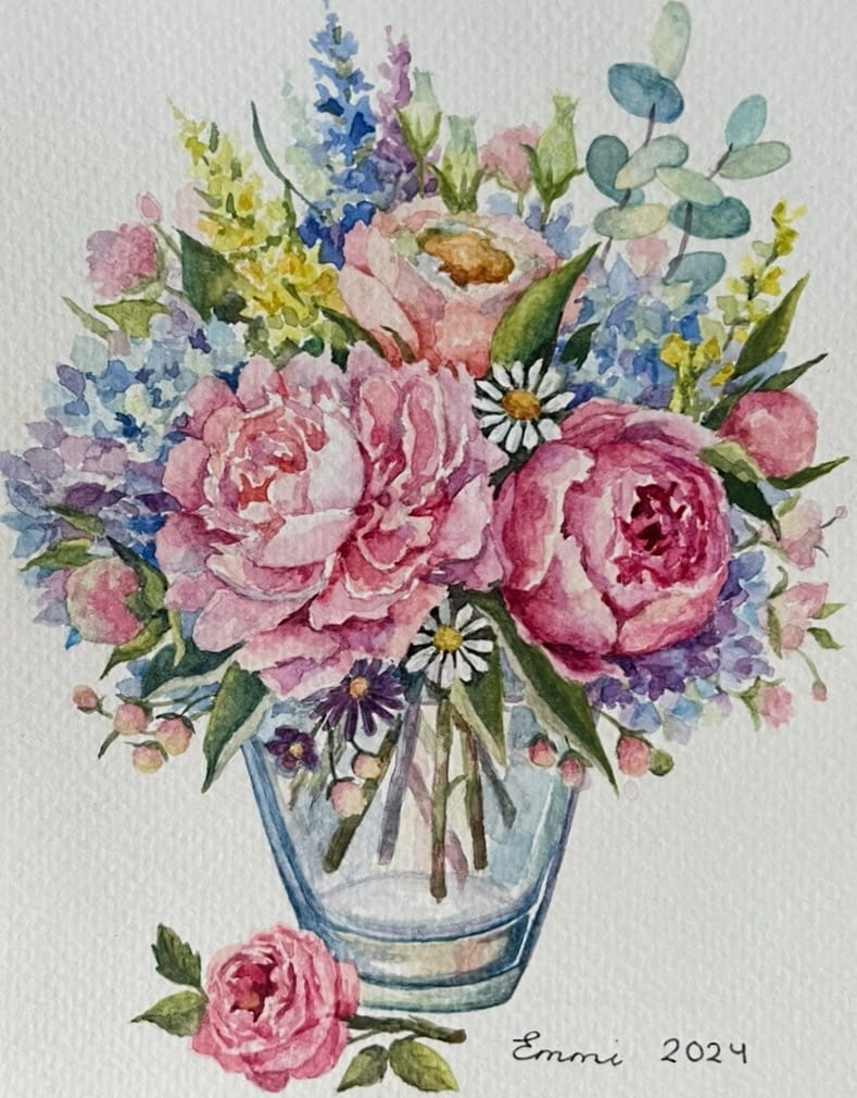 Olen Emmi Pitkänen, 21-vuotias diplomi-insinööriopiskelija. Vapaa-ajalla minut löytää usein sivellin kädessä, sillä maalaaminen on minulle tapa pysähtyä ja tallentaa merkityksellisiä hetkiä. Taide on kulkenut mukanani lapsuudesta asti, ja vuosien varrella olen löytänyt oman tapani taiteilla akvarellien, öljyvärien ja akryylimaalauksen parissa.